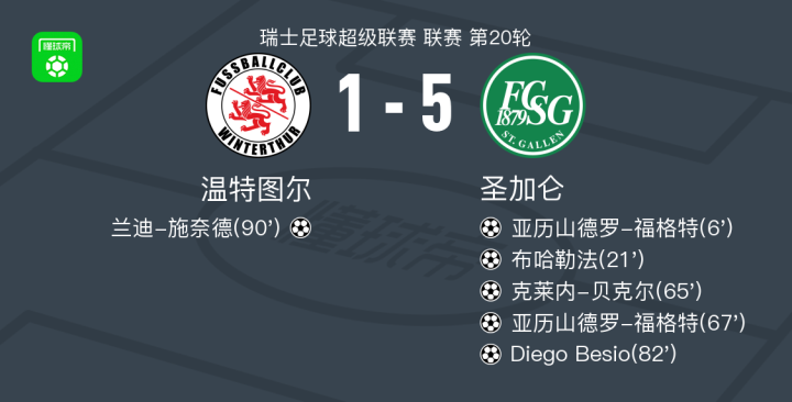 圣加仑5-1大胜温特图尔,亚历山德罗-福格特梅开二度,Diego Besio破门