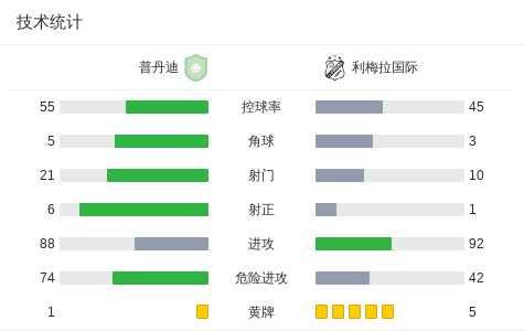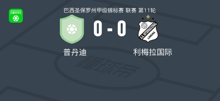 普丹迪0-0利梅拉国际,场面火爆,两队6人染黄战报bot @懂球帝02-19 08:33北京时间2月19日巴西圣保罗州甲级锦标赛 联赛 第11轮,普丹迪主场对阵利梅拉国际。最终比分普丹迪 0-0 利梅拉国际。点击查看本场比赛详细数据>> 技术统计 展开更多