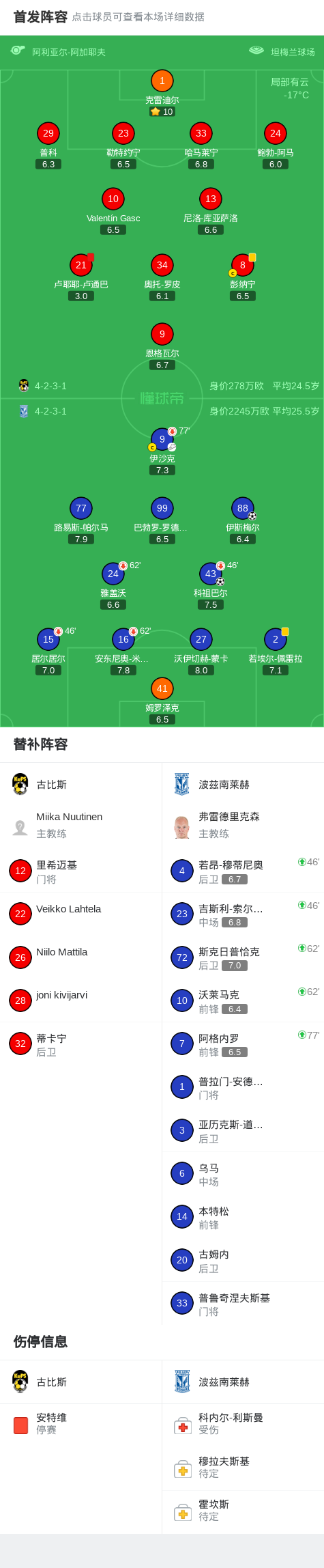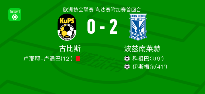 北京时间2月20日欧洲协会联赛 淘汰赛附加赛首回合,古比斯对阵波兹南莱赫。波兹南莱赫科祖巴尔破门,伊斯梅尔破门。最终比分古比斯 0-2 波兹南莱赫。