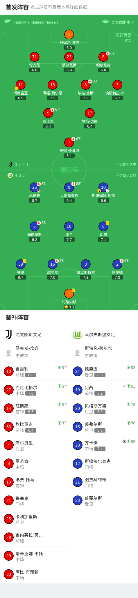 沃尔夫斯堡女足2-0尤文图斯女足,恩德曼破门,齐卡伊锦上添花