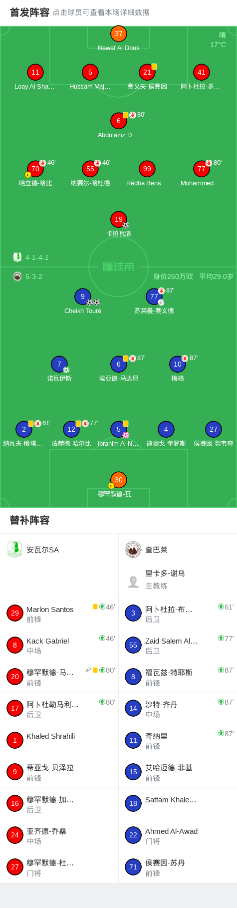 第84分钟,安瓦尔SA球员穆罕默德-马杰拉希助攻卡拉瓦洛打入一球。