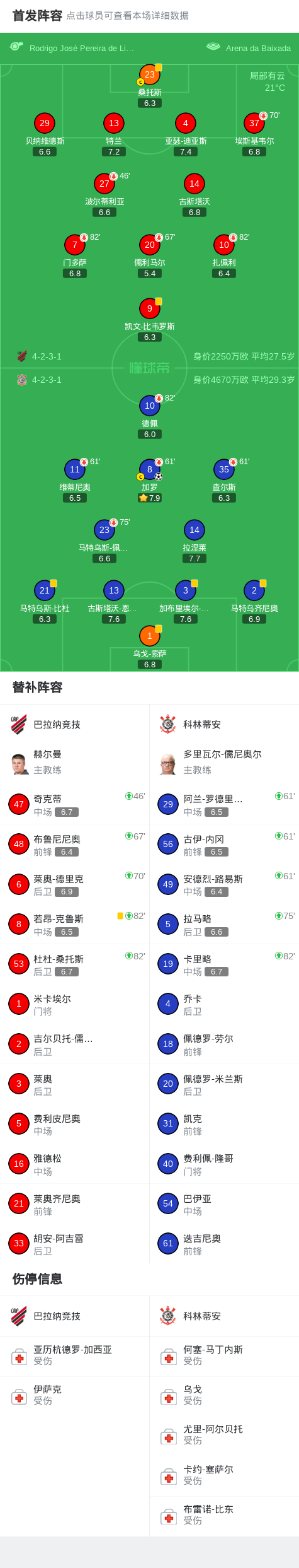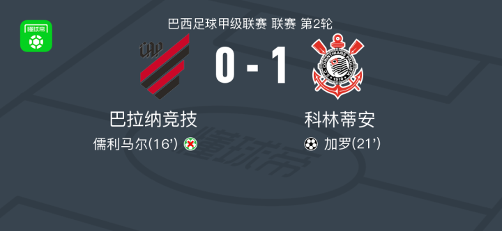 科林蒂安1-0巴拉纳竞技,加罗助球队取胜战报bot @懂球帝02-20 08:41北京时间2月20日巴西足球甲级联赛 联赛 第2轮,巴拉纳竞技主场对阵科林蒂安。科林蒂安加罗破门。最终比分巴拉纳竞技 0-1 科林蒂安。点击查看本场比赛详细数据>>点击查看巴甲完整积分榜>>精彩瞬间第16分钟,巴拉纳竞技球员儒利马尔将点球罚丢。第21分钟,科林蒂安球员加罗打入一球。 球队阵容 技术统计 展开更多