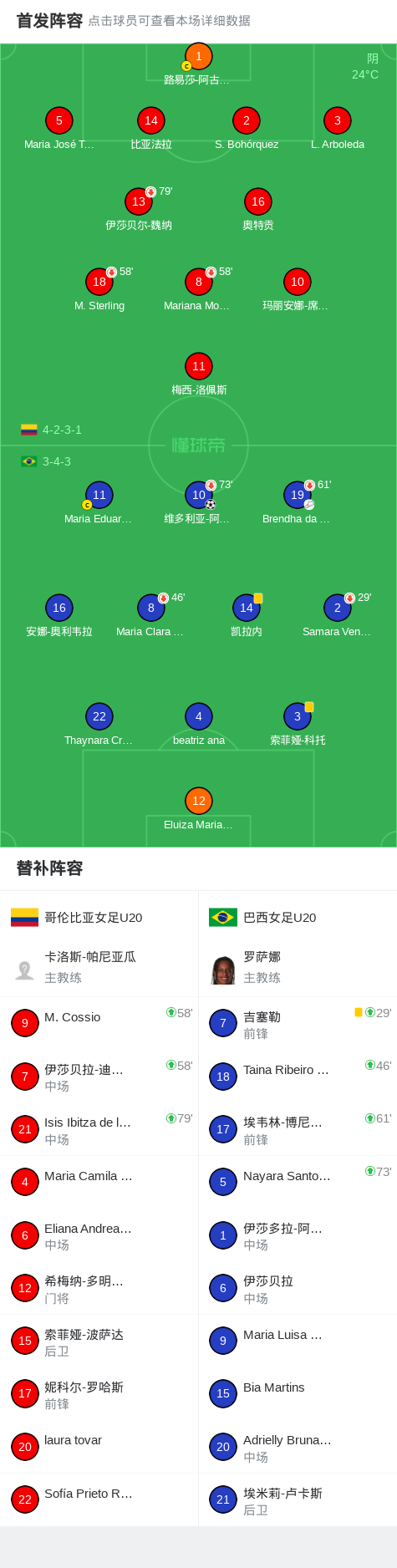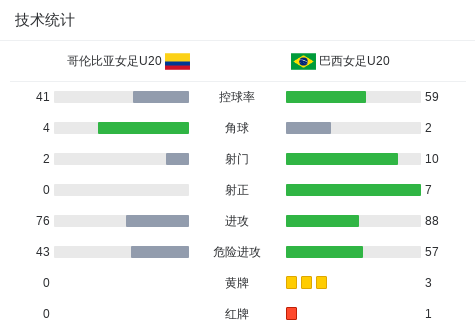 巴西U20 1-0哥伦比亚女足U20,维多利亚-阿马拉尔制胜球