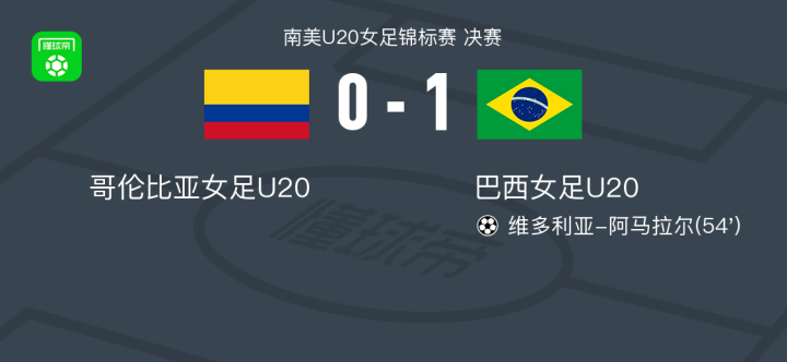 北京时间2月20日南美U20女足锦标赛 决赛,哥伦比亚女足U20对阵巴西女足U20。巴西女足U20维多利亚-阿马拉尔破门。最终比分哥伦比亚女足U20 0-1 巴西U20。