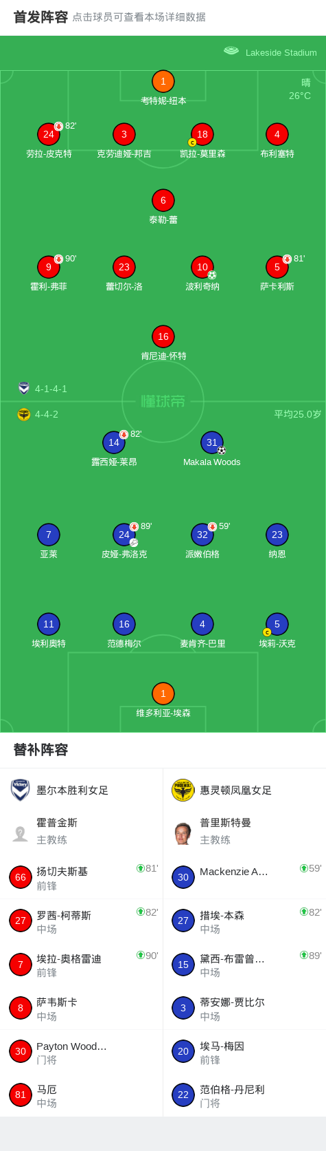 墨尔本胜利女足1-1惠灵顿凤凰女足,波利奇纳首开记录,Makala Woods扳平