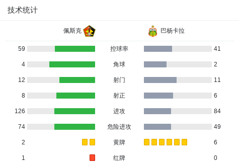 下半场补时第7分钟,佩斯克球队基科吃到第二张黄牌。