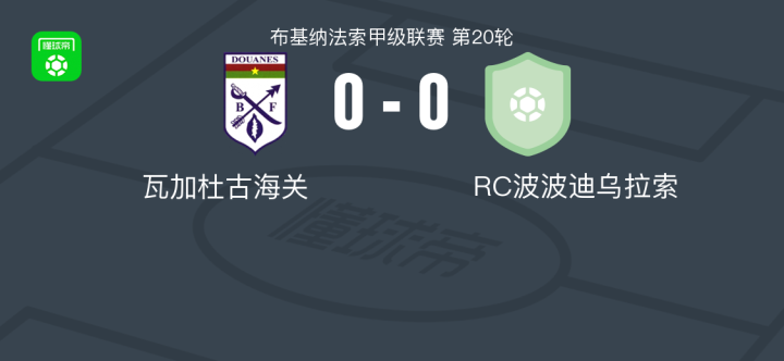 海关0-0RC波波迪乌拉索,势均力敌战报bot @懂球帝02-21 01:24北京时间2月20日布基纳法索甲级联赛 第20轮,瓦加杜古海关主场对阵RC波波迪乌拉索。最终比分海关 0-0 RC波波迪乌拉索。点击查看本场比赛详细数据>> 技术统计 展开更多