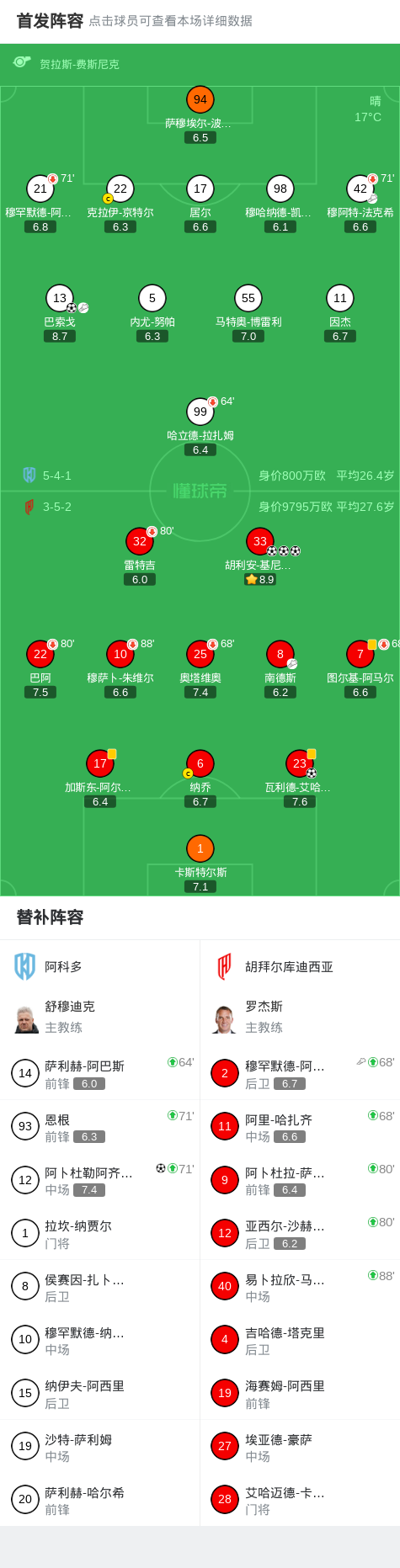 第43分钟,阿科多球员穆阿特-法克希助攻巴索戈打入一球。