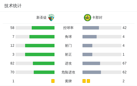 上半场补时第1分钟,卡那封球员布拉德-扬打入一球。