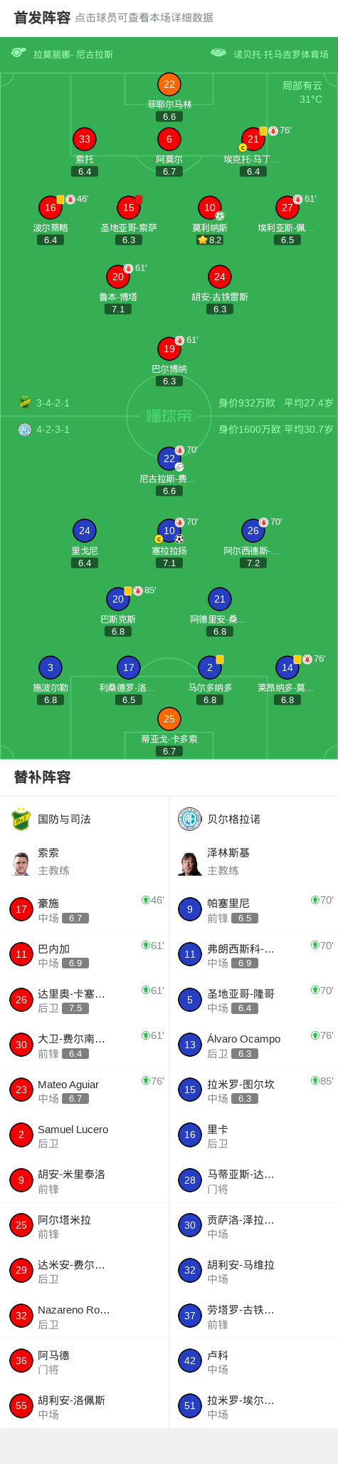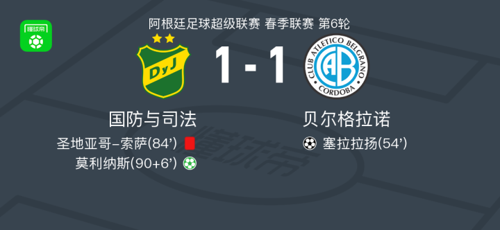 国防与司法1-1贝尔格拉诺,塞拉拉扬首开记录,莫利纳斯救主
