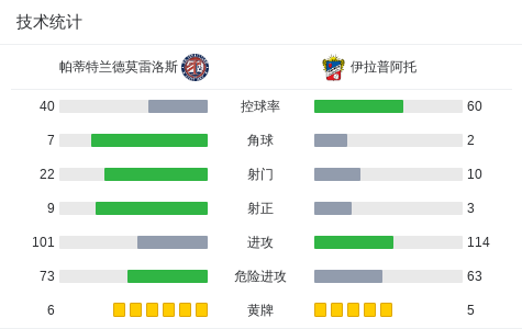 北京时间2月21日墨西哥足球甲级联赛 秋季联赛 第7轮,帕蒂特兰德莫雷洛斯主场对阵伊拉普阿托。帕蒂特兰德莫雷洛斯古斯曼破门,门多萨破门。伊拉普阿托胡安-甘博亚破门。最终比分帕蒂特兰德莫雷洛斯 2-1 伊拉普阿托。