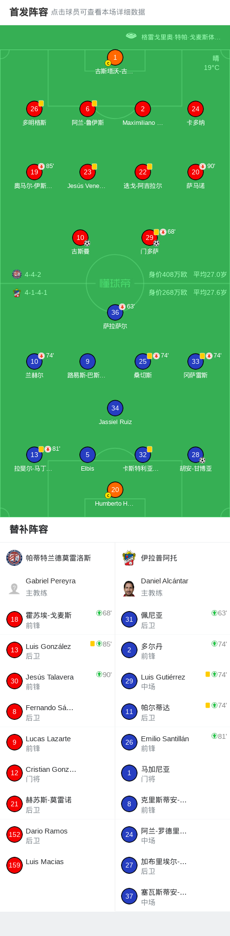 第67分钟,帕蒂特兰德莫雷洛斯球员门多萨打入一球。