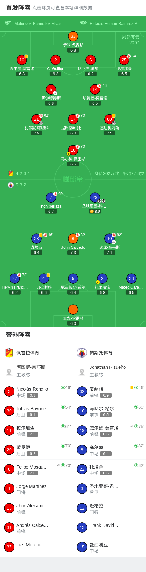 佩雷拉体育2-2帕斯托体育,瓦尔默-帕切科破僵,圣地亚哥-科尔多瓦扳平比分