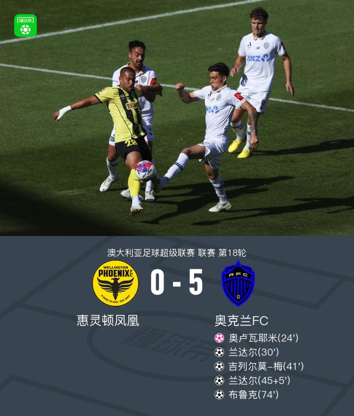 奥克兰FC5-0惠灵顿凤凰,奥卢瓦耶米离谱乌龙,兰达尔2射1传
