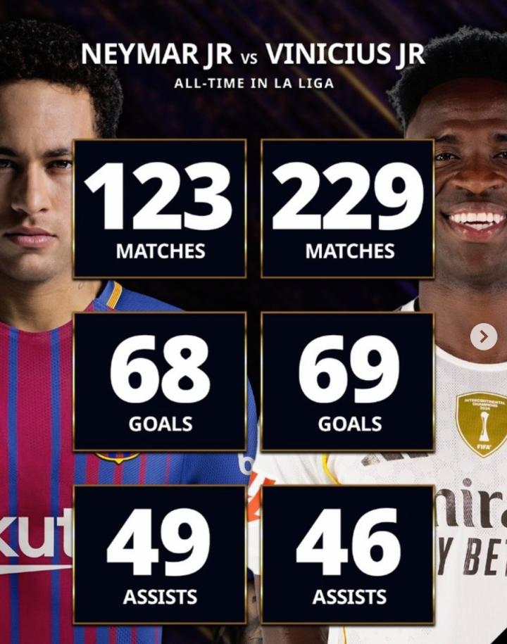 巴西天才西甲数据对比:内马尔123场68球49助,维尼修斯229场69球46助Diavel_aDRy @懂球帝02-21 19:42北京时间2月21日,环球足球奖官方对比了内马尔和维尼修斯两代巴西天才球星生涯西甲联赛的数据对比。根据统计,内马尔2013年至2017年效力巴萨期间一共在西甲出场123次,打进68球并送出49次助攻,123场西甲直接参与117粒进球。维尼修斯自2018年加盟皇马以来一共在西甲出场229次,打进69球助攻46次,229场西甲直接参与115球。展开更多