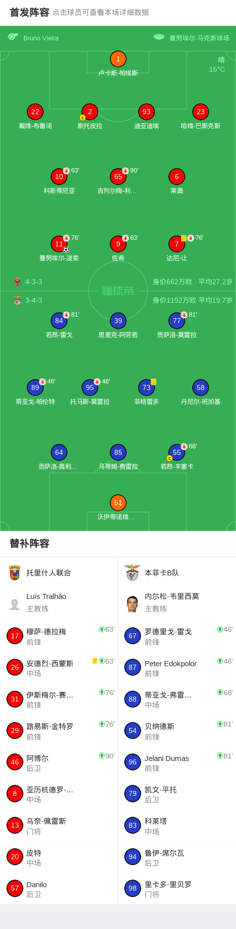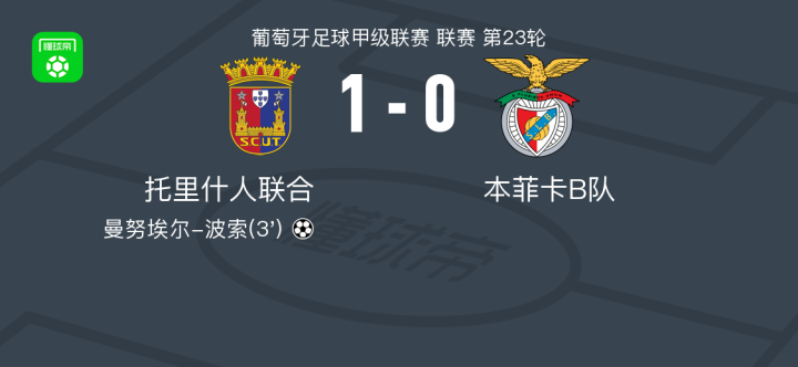 托里什人联合1-0本菲卡B队,曼努埃尔-波索助球队取胜战报bot @懂球帝02-21 20:55北京时间2月21日葡萄牙足球甲级联赛 联赛 第23轮,托里什人联合主场对阵本菲卡B队。托里什人联合曼努埃尔-波索破门。最终比分托里什人联合 1-0 本菲卡B队。点击查看本场比赛详细数据>>点击查看葡甲完整积分榜>>精彩瞬间第3分钟,托里什人联合球员曼努埃尔-波索打入一球。 球队阵容 技术统计 展开更多