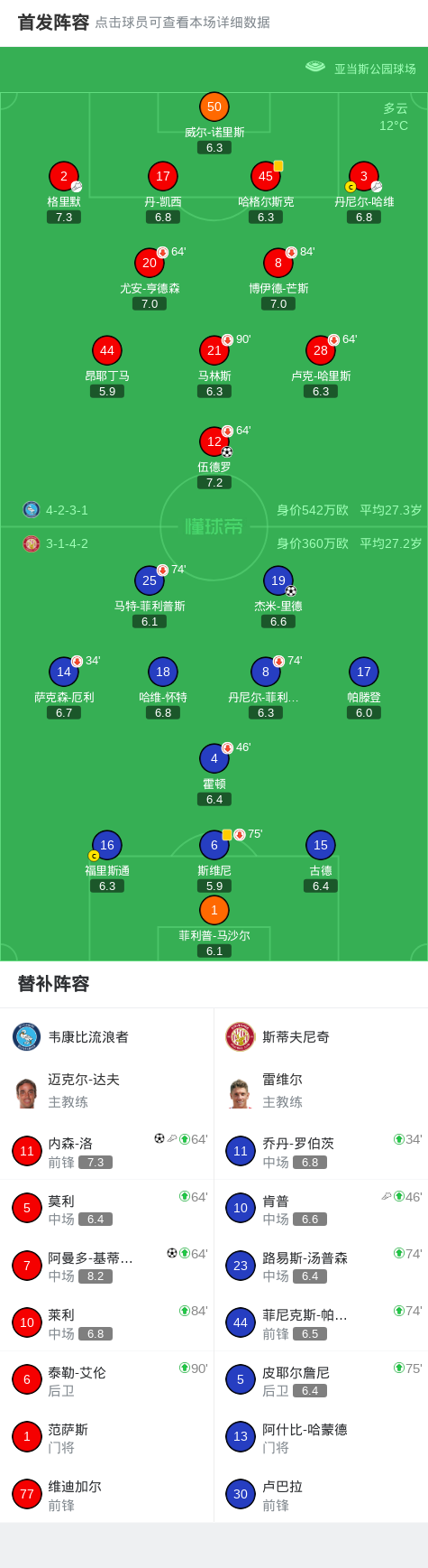 韦康比流浪者3-1斯蒂夫尼奇,阿曼多-基蒂尔纳建功,内森-洛替补1传1射
