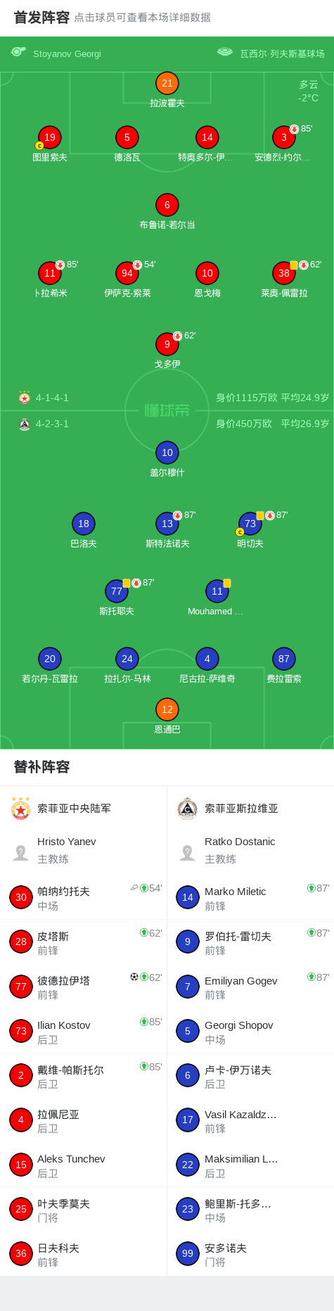 第82分钟,索菲亚中央陆军球员帕纳约托夫助攻彼德拉伊塔打入一球。