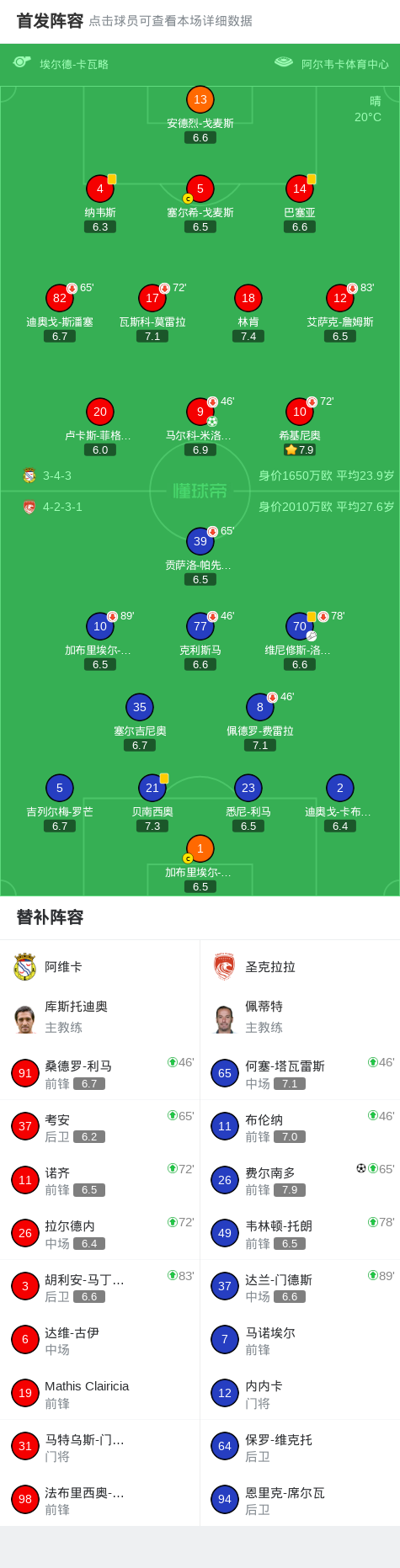 阿维卡1-1圣克拉拉,马尔科-米洛万诺维奇先拔头筹,费尔南多救主