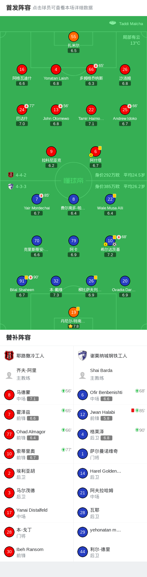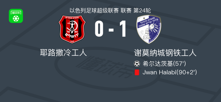 北京时间2月22日以色列足球超级联赛 联赛 第24轮,耶路撒冷工人主场对阵谢莫纳城钢铁工人。谢莫纳城钢铁工人希尔达茨基破门。最终比分耶路撒冷工人 0-1 谢莫纳城钢铁工人。
