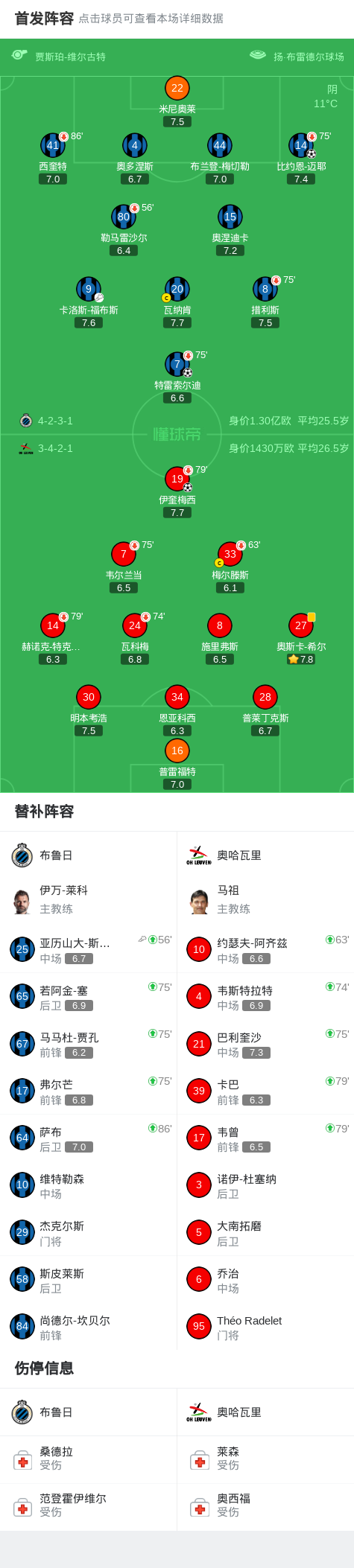 布鲁日2-1奥哈瓦里,特雷索尔迪、比约恩-迈耶破门
