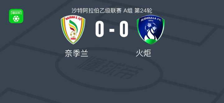 奈季兰0-0火炬,势均力敌战报bot @懂球帝02-22 05:04北京时间2月22日沙特阿拉伯乙级联赛 A组 第24轮,奈季兰主场对阵火炬。最终比分奈季兰 0-0 火炬。点击查看本场比赛详细数据>>展开更多