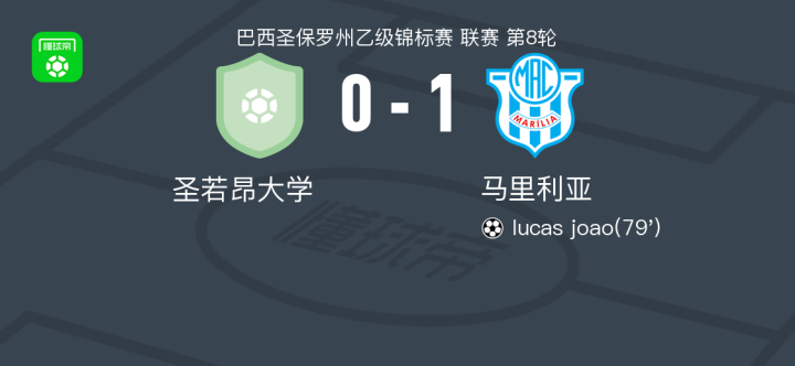 马里利亚1-0圣若昂大学,lucas joao一剑封喉战报bot @懂球帝02-22 06:00北京时间2月23日巴西圣保罗州乙级锦标赛 联赛 第8轮,圣若昂大学主场对阵马里利亚。马里利亚lucas joao破门。最终比分圣若昂大学 0-1 马里利亚。点击查看本场比赛详细数据>>精彩瞬间第79分钟,马里利亚球员lucas joao打入一球。展开更多