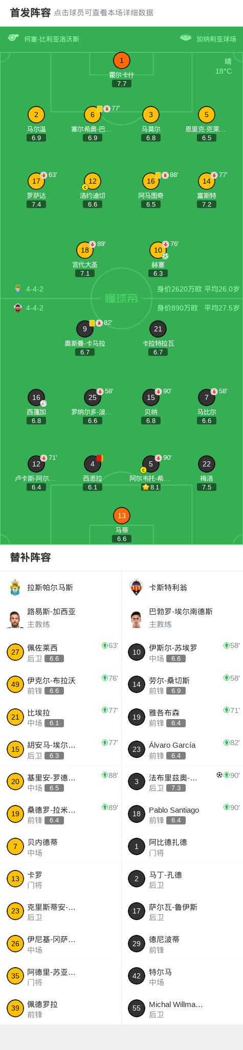 拉斯帕尔马斯1-1卡斯迪隆,赫塞首开记录,法布里兹奥-布里加尼扳平比分