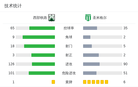 下半场补时第6分钟,西部铁路球员塔龙助攻佛朗哥-加西亚打入一球。