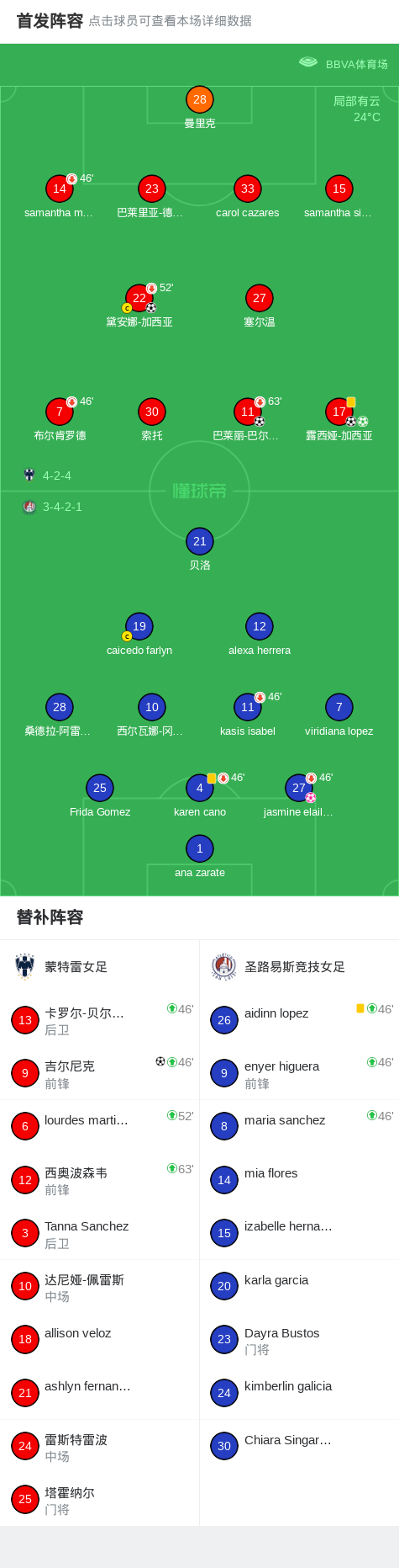 蒙特雷女足6-0横扫圣路易斯竞技女足,露西娅-加西亚双响,吉尔尼克建功