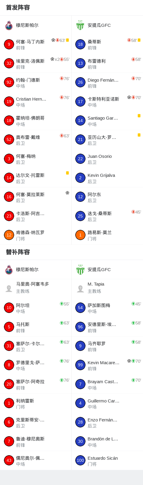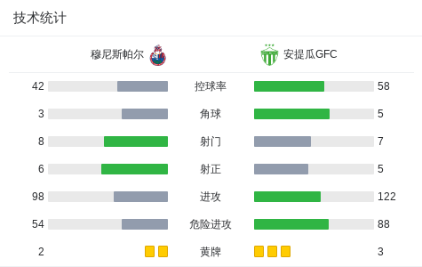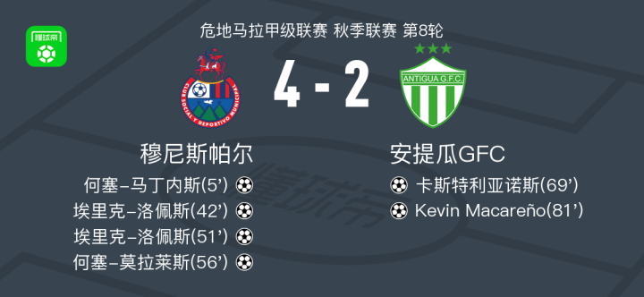 穆尼斯帕尔4-2安提瓜GFC,埃里克-洛佩斯梅开二度,何塞-莫拉莱斯破门