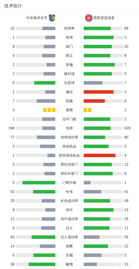 北京时间2月22日澳大利亚足球超级联赛第18轮,中央海岸水手主场迎战西悉尼流浪者。 比赛中,西悉尼流浪者率先打破僵局,弗雷泽助攻瑟盖特完成破门;随后中央海岸水手由奥古拉扳平比分。之后西悉尼流浪者再次由指宿洋史将比分超出;中央海岸水手则通过布莱尔再次扳平。比赛尾声阶段,中央海岸水手的多纳基打入制胜球。 最终,中央海岸水手以3-2战胜西悉尼流浪者。