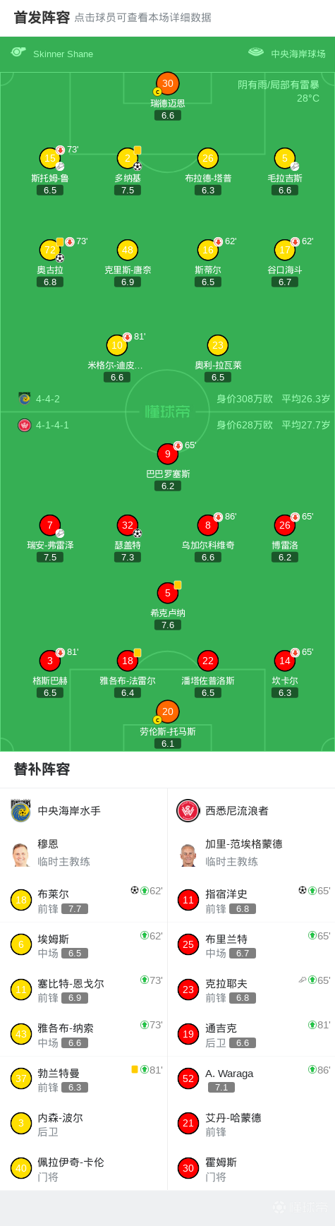 第77分钟,毛拉吉斯助攻,布莱尔进球,中央海岸水手2-2西悉尼流浪者