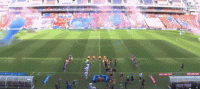 双方球员步入球场,大战即将打响
