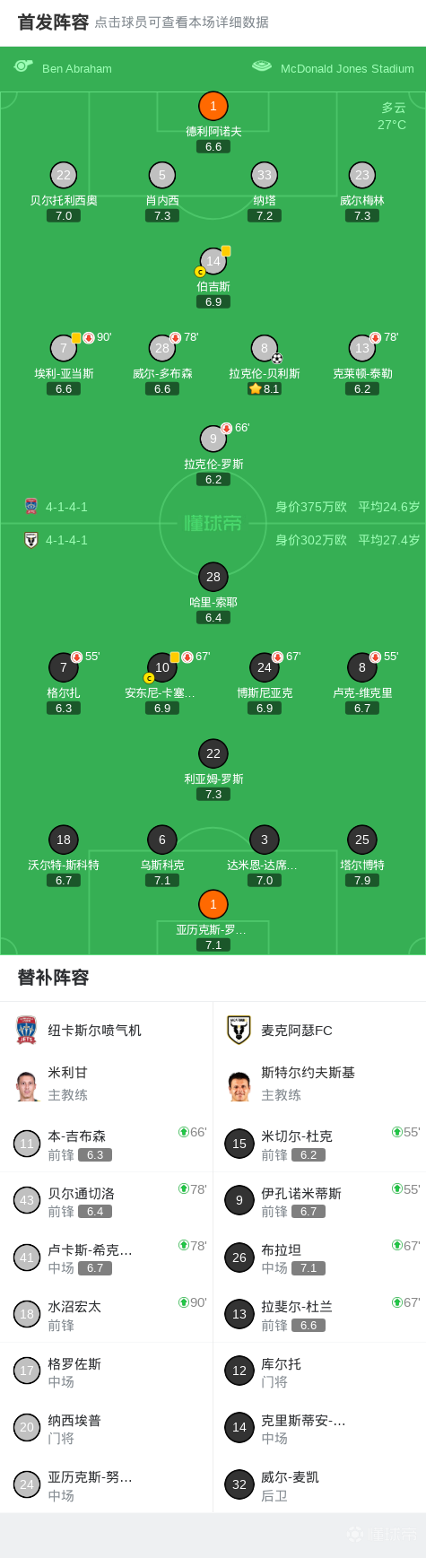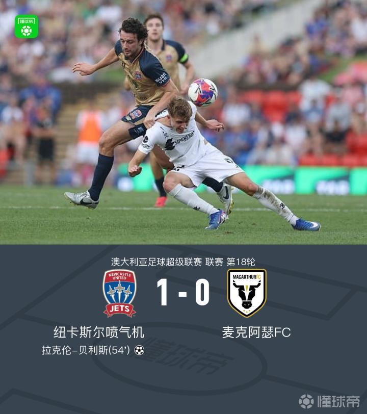 北京时间2月22日,澳大利亚足球超级联赛第18轮,纽卡斯尔喷气机主场迎战麦克阿瑟FC。比赛中,拉克伦-贝利斯打入全场唯一进球。最终,纽卡斯尔喷气机1-0战胜麦克阿瑟FC。