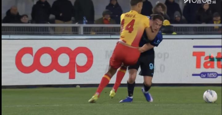 莱切球员在之后每一次拼抢中都有不停的身体接触,用积极的跑动和凶狠的贴身逼抢,主旨就是破坏国米的进攻流畅性。