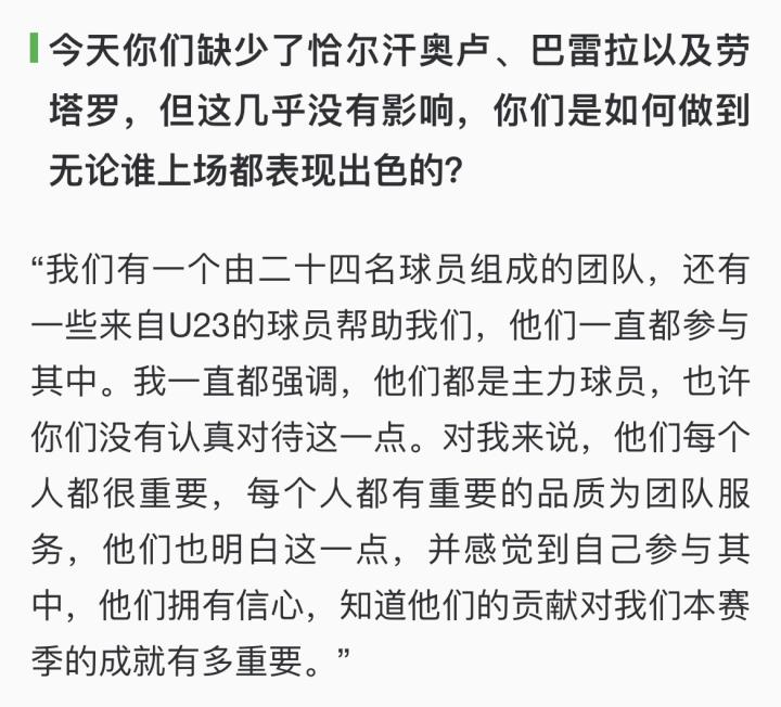 在缺失3位核心球员、魔鬼赛程的情况下,此番国米的获胜来自于主帅、球员的众志成城、上下一心,作为更衣室里的老大,齐沃功不可没!