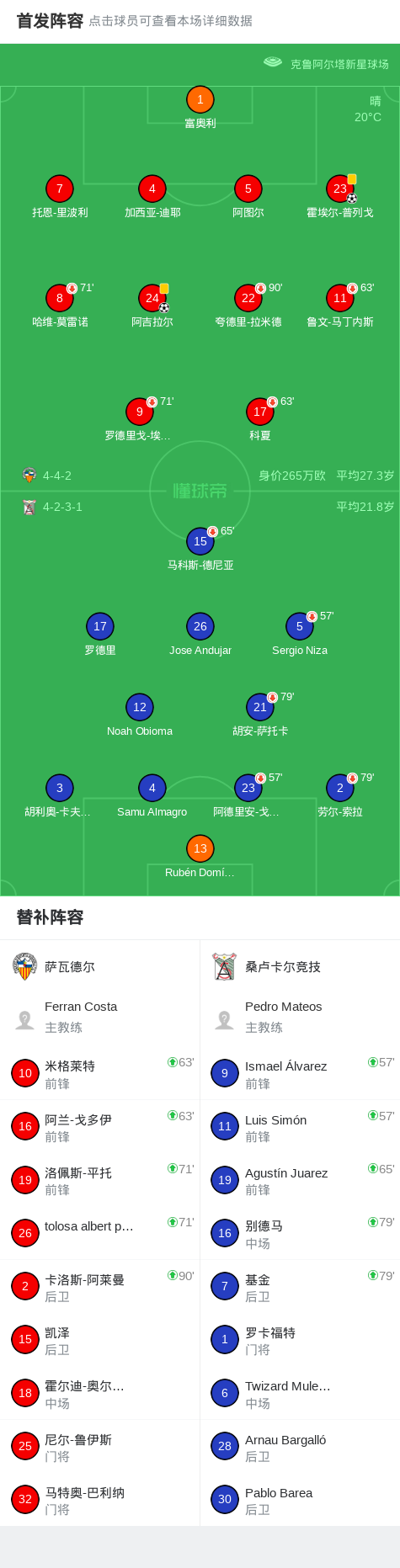 萨瓦德尔2-0桑卢卡尔竞技,霍埃尔-普列戈建功,阿吉拉尔锁定胜局