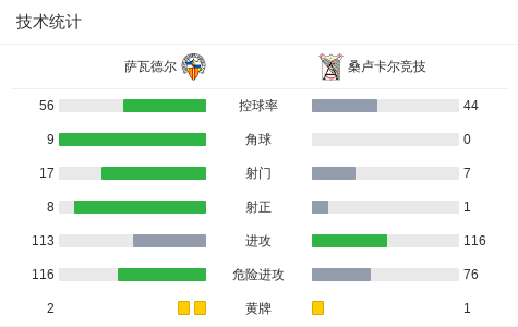 第45分钟,萨瓦德尔球员阿吉拉尔打入一球。
