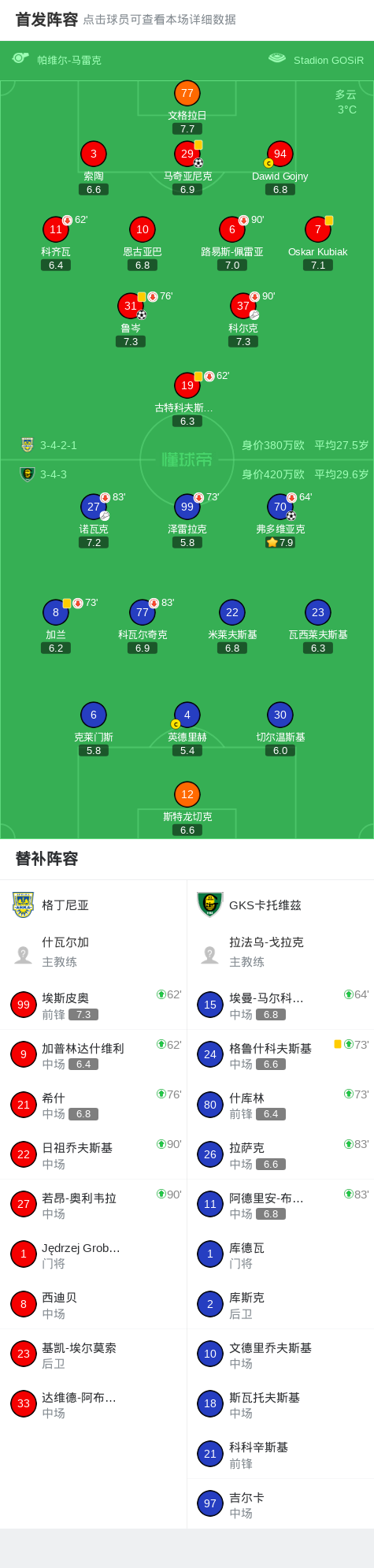 格丁尼亚2-1逆转GKS卡托维兹,鲁岑、马奇亚尼克破门