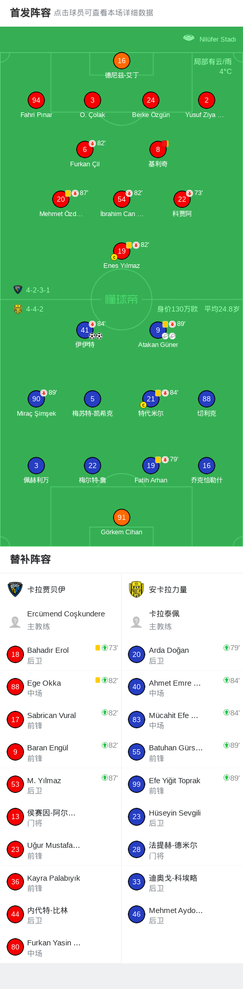 第31分钟,卡拉贾贝伊球队基利奇吃到第二张黄牌。