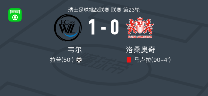 韦尔1-0洛桑奥奇,拉普一击制胜战报bot @懂球帝02-22 22:53北京时间2月22日瑞士足球挑战联赛 联赛 第23轮,韦尔主场对阵洛桑奥奇。韦尔拉普破门。最终比分韦尔 1-0 洛桑奥奇。点击查看本场比赛详细数据>>精彩瞬间第50分钟,韦尔球员Julind Selmonaj助攻拉普打入一球。下半场补时第4分钟,洛桑奥奇球队马卢拉吃到红牌。 球队阵容 技术统计 展开更多