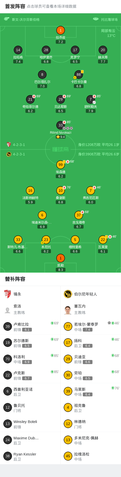 第77分钟,锡永球员Rilind Nivokazi打入一球。
