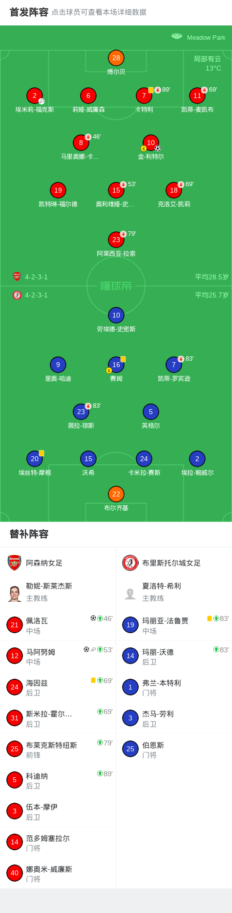 第25分钟,阿森纳女足球员金-利特尔打入一球。