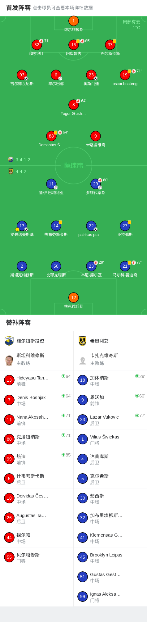 第2分钟,维尔纽斯投资球员吉尔德瓦尼斯打入一球。