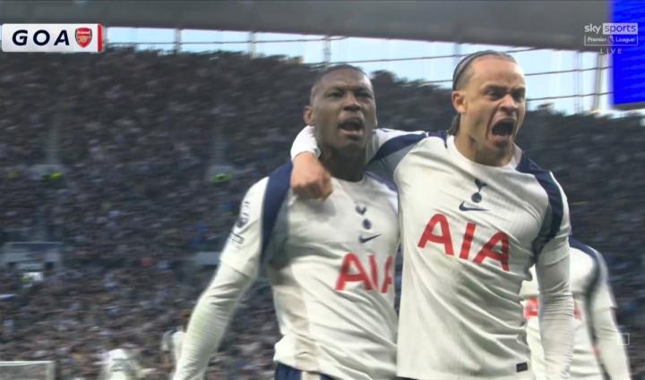 北伦敦德比破门,热刺前锋穆阿尼斩获英超生涯首球ETChalmers @懂球帝02-23 01:12英超第27轮,热刺主场对阵阿森纳,上半场穆阿尼破门为热刺扳平比分,斩获英超生涯处子球。此役主场对阵阿森纳,首发出战的穆阿尼在比赛第34分钟抓住赖斯的失误取得进球,帮助热刺迅速将比分扳为1-1。据统计,这是穆阿尼代表热刺在英超赛场第19次出场打入的首粒进球,这位法国前锋此前曾代表热刺在欧冠赛场出场7次打入3球。展开更多