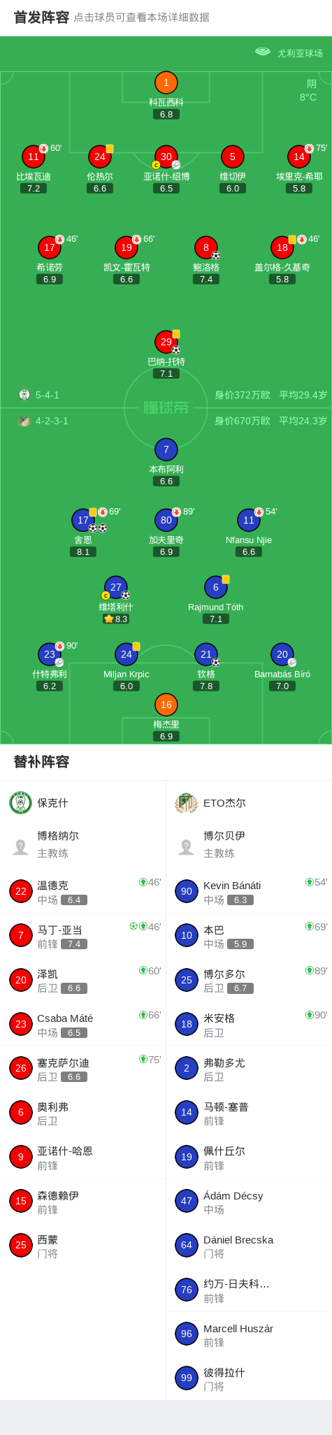 第42分钟,保克什球员亚诺什-绍博助攻巴纳-托特打入一球。