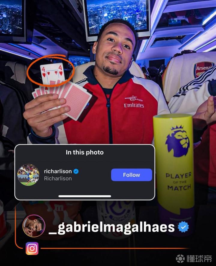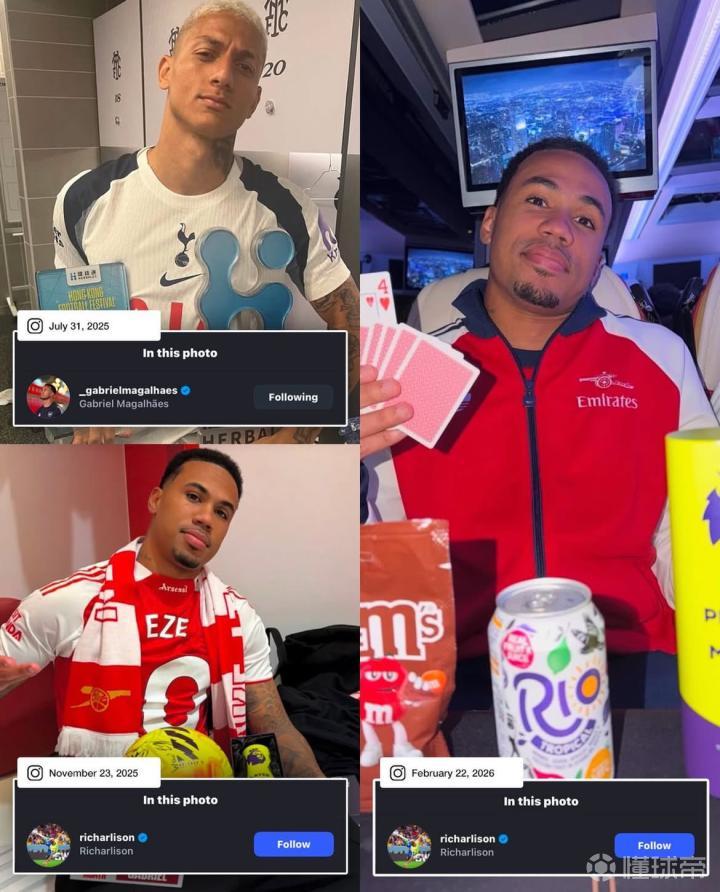 最终,阿森纳4-1联赛双杀热刺。 赛后加布里埃尔更新个人社交媒体,他还特意艾特了理查利松! 此前,热刺在香港战胜阿森纳后,理查利森晒出自己捧起冠军奖杯和最佳球员奖的照片,并@ 加布里埃尔。 加布里埃尔随后晒出自己在北伦敦德比中获得的三座英超最佳球员奖杯,并@ 理查利森。 理查利森又晒出了热刺的欧联冠军奖杯回击…… 如今,看起来两人这互怼没完没了了。