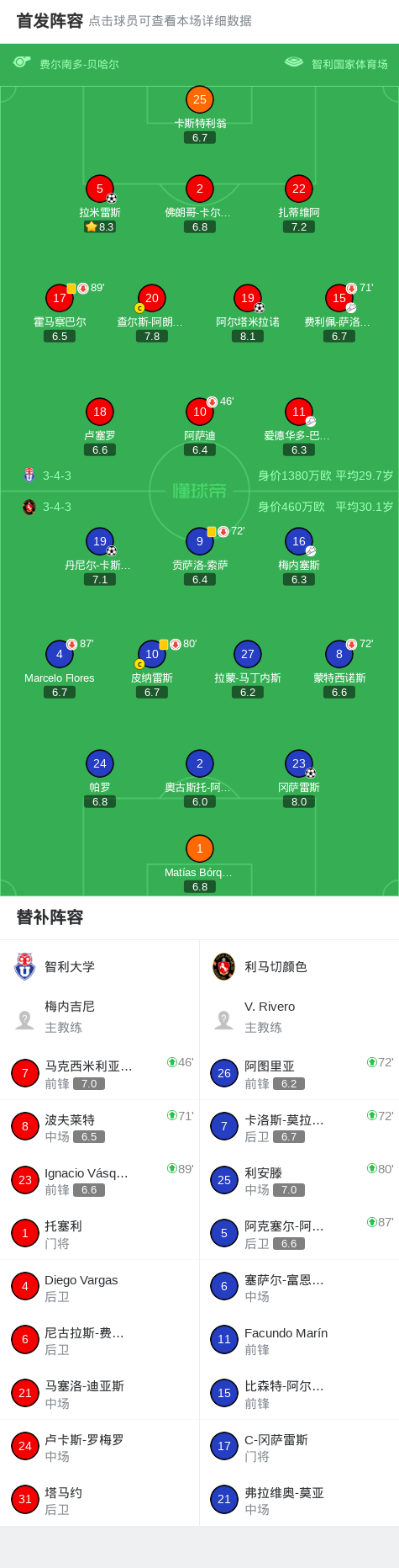 第54分钟,智利大学球员费利佩-萨洛莫尼助攻拉米雷斯打入一球。