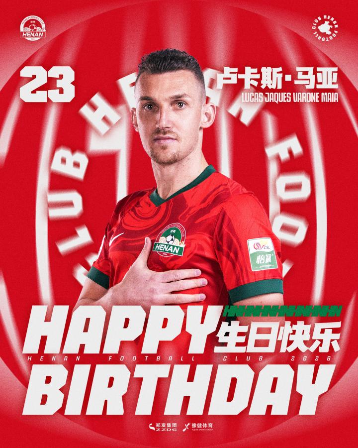 今天是河南足球俱乐部球员卢卡斯·马亚和杨意林的生日,让我们一同祝福他们生日快乐!